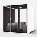 Our most flexible modular office room, the Bureau Team booth offers multiple configuration options that easily adjust to changing needs. The Team fits six people comfortably, allowing for deeper connection and collaboration thanks to its impressive soundproofing. Reimagine it as a single or double office by removing the included benches and table and adding the furniture of your choice.